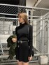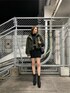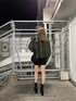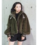 【カーキが映える☺︎ブラックコーデ】 ファーブルゾンは丈が短めなので、ミニボトムから、ワイドパンツまで幅広いボトムスとの相性抜群です◎アームが緩めの作りなので厚手のニットやトレーナーなども着込みやすく、軽くて着心地良いです!首元まで締めて着用しても、レザーベルトがポイントで可愛いです♡ワンピースは程よくフィットするシルエットなので女性らしく、縦リブが入っているので体のラインを綺麗に見せてくれます!厚底ブーツはソールにもしっかり高さがあるので高低差がなく歩きやすいです!センターラインとスクエアのデザインなのでスタイルアップ効果抜群です☺︎バックはサニーモチーフとショルダーのシルバーチェーンがコーデのポイントになってくれます♡