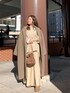 ラテカラーワントーンでレディライクコーデの完成❤︎ ナチュラルなカラーだからこそ洗練されたイメージに。シンプルながらも透かし編みのニットや絶妙な光沢感のあるスカートがおしゃれさをプラス✴︎ オーバーサイズのチェスターコートは小柄さんでも 着やすいサイズ感で着こなしもしやすい♪ 生地も柔らかいのでとっても着やすいです♡
