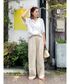 【コーデ】 Ungridのコンセプトでもある、カジュアル×レディがテーマのコーデに♡ オフショルトップスで程よい肌見せをしながら、パンツはルーズシルエットで合わせて小物もカジュアルに。 レディとカジュアルのバランスが大事です☺️✨ アイテムはホワイト〜ベージュのワントーンで揃えてヘルシーな印象に♡小物はキャップとビーサンでカジュアルで外す♩ カジュアルすぎない!でも綺麗めすぎない!この絶妙なバランスがおすすめです☺️ 【トップス】 テロンとした生地感が着心地💯 オフショルデザインで女っぽさ♡を演出。 両方の肩を落としても◎、片方だけ落としてワンショルでも◎です☺️ 生地が薄めなのでボトムにインしやすいのも嬉しいポイント✨ 【パンツ】 Ungridで毎年大人気のリネン混生地のパンツ✨ 今年はカーブシルエットで登場です♡ リネン混のナチュラルな風合いが高見えします✨さりげないカーブシルエットが下半身の気になる部分をカバー☺︎ウエストは総ゴムでウエストの内側に紐もついているので、キュッとしめてジャストウエストでも着ていただけます♩ はくだけでこなれ感が出るので重宝すること間違いなしです🩶 ※丈感特記事項⇩ 152cm / 骨格ウェーブ フラットシューズだと少し丈感長めです! ですがズルッとした丈感がおしゃれでかわいいので靴で調整して着てください♩