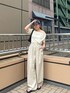 【コーデ】 Ungridのコンセプトでもある、カジュアル×レディがテーマのコーデに♡ オフショルトップスで程よい肌見せをしながら、パンツはルーズシルエットで合わせて小物もカジュアルに。 レディとカジュアルのバランスが大事です☺️✨ アイテムはホワイト〜ベージュのワントーンで揃えてヘルシーな印象に♡小物はキャップとビーサンでカジュアルで外す♩ カジュアルすぎない!でも綺麗めすぎない!この絶妙なバランスがおすすめです☺️ 【トップス】 テロンとした生地感が着心地💯 オフショルデザインで女っぽさ♡を演出。 両方の肩を落としても◎、片方だけ落としてワンショルでも◎です☺️ 生地が薄めなのでボトムにインしやすいのも嬉しいポイント✨ 【パンツ】 Ungridで毎年大人気のリネン混生地のパンツ✨ 今年はカーブシルエットで登場です♡ リネン混のナチュラルな風合いが高見えします✨さりげないカーブシルエットが下半身の気になる部分をカバー☺︎ウエストは総ゴムでウエストの内側に紐もついているので、キュッとしめてジャストウエストでも着ていただけます♩ はくだけでこなれ感が出るので重宝すること間違いなしです🩶 ※丈感特記事項⇩ 152cm / 骨格ウェーブ フラットシューズだと少し丈感長めです! ですがズルッとした丈感がおしゃれでかわいいので靴で調整して着てください♩
