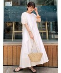 夏ワンピ! 二の腕気になる方にもおすすめ! パフスリーブで肩周りにポイントにもなるのでサラッと1枚きるだけでぐっと雰囲気も◎ とにかく涼しくて楽ちんでおしゃれ。
