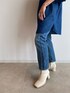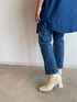 デニム×デニムでも大人な雰囲気。 さりげなく前後ろで濃淡の差があるバイカラーデニムは1本でおしゃれ見えします。