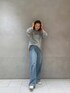透け感とずるっと感がかわいいニット。今の時期ならインナーは華奢なキャミやタンクを合わせて、透け感が分かるように◎ブルーのルーズなデニムを合わせてキレイめになりすぎずに合わせるのがわたしのおすすめです!