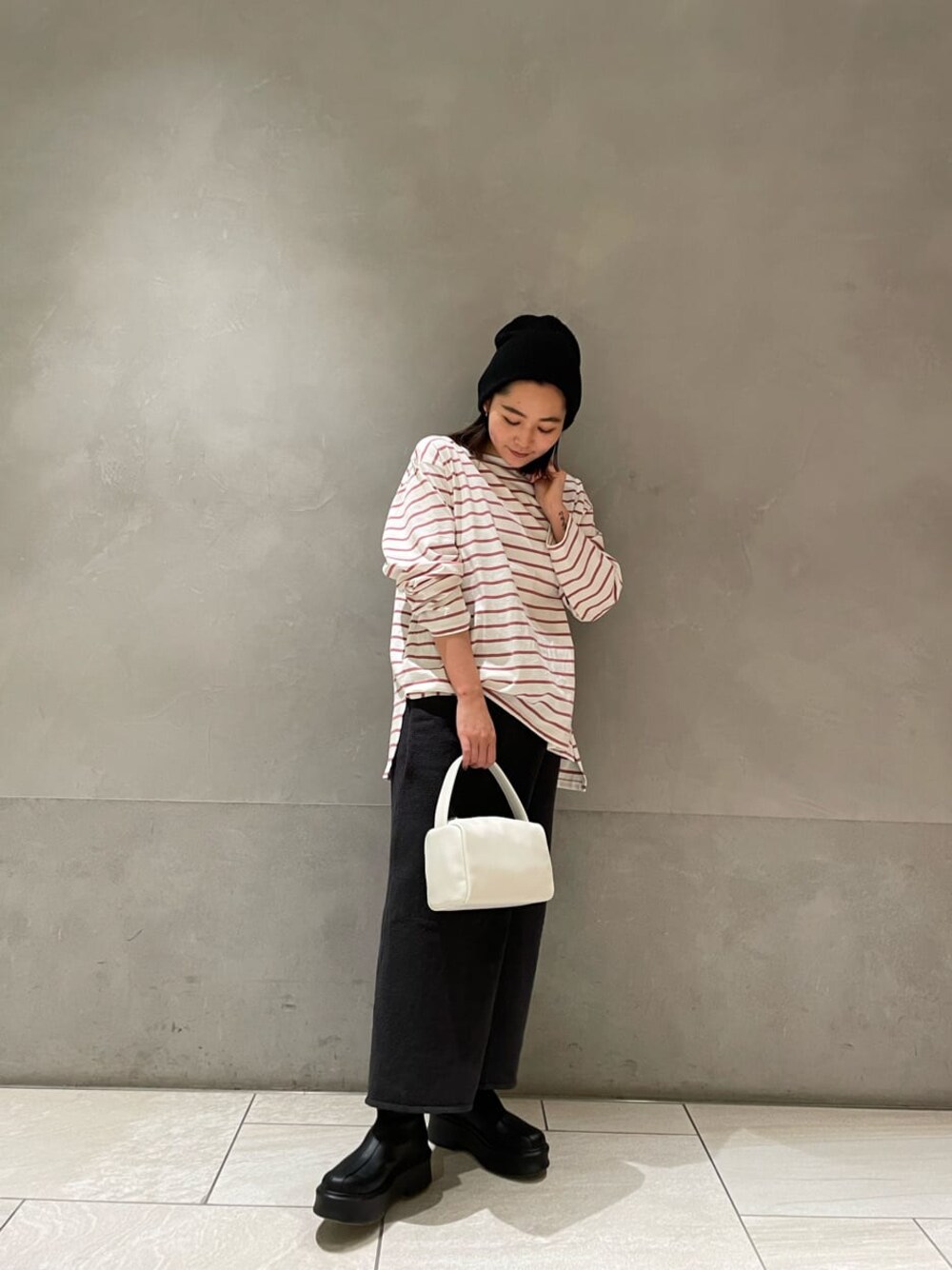 加藤奈々(Ungrid)のTシャツ/カットソー「ボートネックボーダーロングスリーブTee」を使ったコーディネート