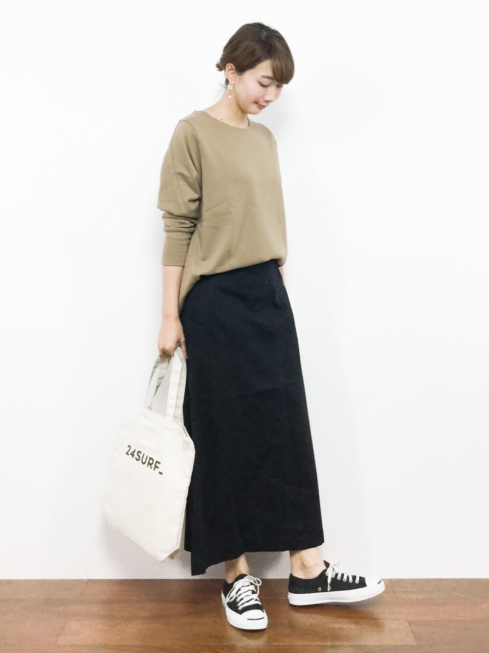 三由佳奈のスウェット「クルーネックバックロングチュニック 806570」を使ったコーディネート