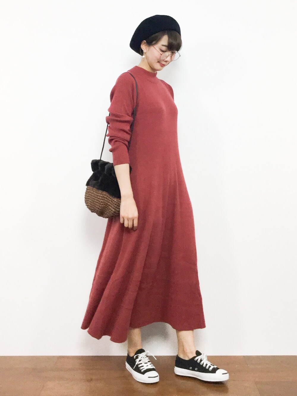 三由佳奈のワンピース「KBF+ ニットフレアワンピース」を使ったコーディネート
