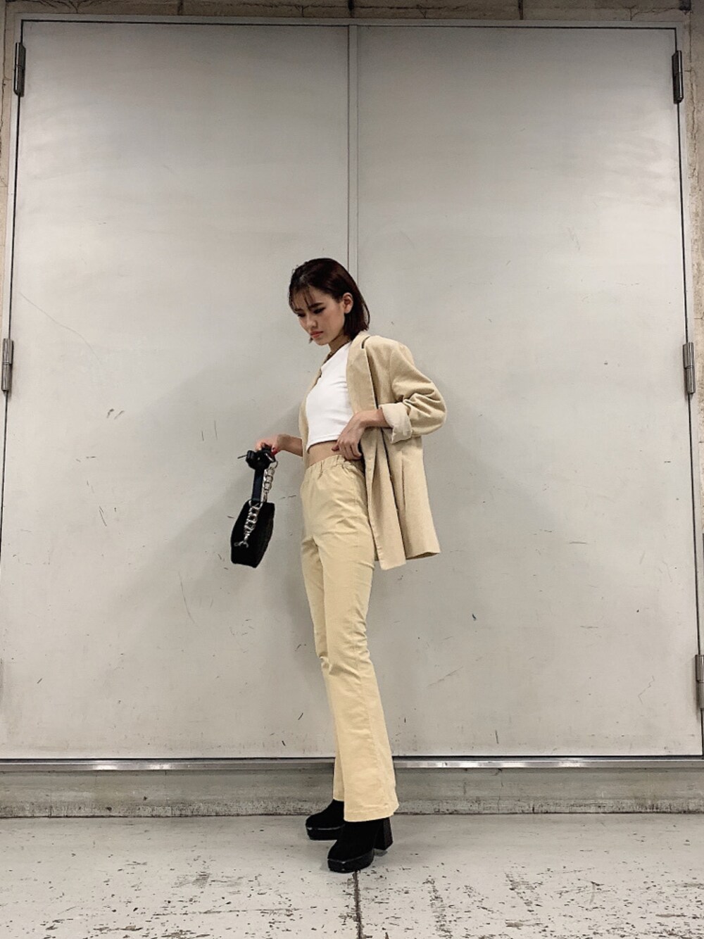 HIKARU(EVRIS)のテーラードジャケット「コーデュロイテーラードジャケット【セットアップ着用可能】」を使ったコーディネート