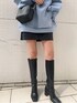 ハリのあるボンディング生地を使用したフーディーは着心地が優勝✴︎オーバーサイズなので寒い日にはインナーを中へ着込みやすいですし、この先暖かくなると1枚で着用し冷んやり清涼感を体感出来ちゃう珍感覚❤︎お袖のぽってりボリュームシルエットも可愛いです❤︎合わせているデニムスカートは丈が長すぎず短すぎずで、オーバーサイズのトップスとも相性満点!ロングブーツはミニボトムのお供になるので、春もマストハブアイテムです❤︎