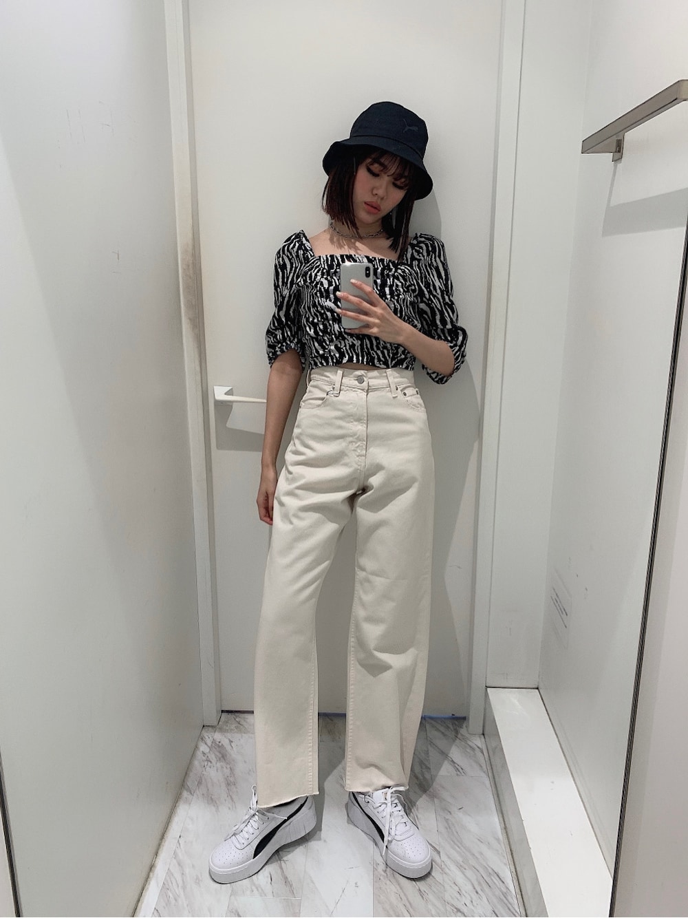 存在感抜群なトップスは1枚でオシャレ上級者になれちゃいます✴︎スクエアネック型が首や顔まわりまでスッキリ効果◎テロッとした素材感が先々長く使えること間違いなしです!EVRISでテッパンのハイウエストデニムパンツと合わせ、メリハリを付けながらスタイルアップを❤︎小物はお問合せ殺到中のプーマセレクトシリーズで統一☺︎エッジを効かせたストリートカジュアルがテーマなコーデです❤︎