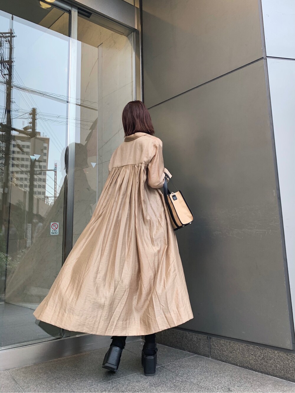 バックプリーツがこなれ感溢れるシアーロングコート✴︎軽量なオーガンジー素材なので、シルエットがしなやかで綺麗になびきます!166cmの身長でふくらはぎがしっかりカバーされる長めな着丈なので、厚底サンダルやヒール合わせが上級者っぽく仕上がりオススメです☺︎リブのノースリトップスにミニスカートで合わせ、スッキリバランス良くコーディネート❤︎ジュート素材のバッグはマチも広く、普段使いにピッタリのサイズ感ですよ❤︎