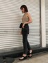 TOPSのベージュカラーでヘルシーさを漂わせつつ、その他をブラックカラーで統一し、大人カッコよく引き締め上げたコーデです❤︎✴︎TOPSのニットタンクはザックリとした編み目ですが、透け感がさほど気にならず「インナーどうしよう..」の悩みが軽減でき最高です☺︎(写真の私もシンプルな下着を着用しております。)肩周りのシルエットやタンクそのものの形で肌見せのバランスが良く仕上がり、いかり肩気味な私でもすごく挑戦しやすかったです❤︎合わせているデニムはEVRISで大人気バックスラッシュシリーズのストレートバージョン★足先に掛けて少しすぼんだシルエットが、美脚効果満点◎他のEVRISのデニムと比較し、着丈も短めな作りなので幅広い身長の方へオススメです❤︎長身さんは写真のようにフラットサンダルで合わせるとラフ度もUPし、今年っぽいですよね❤︎最近気温も安定して暖かいので、夏先取りコーデにいかがでしょうか?☺︎