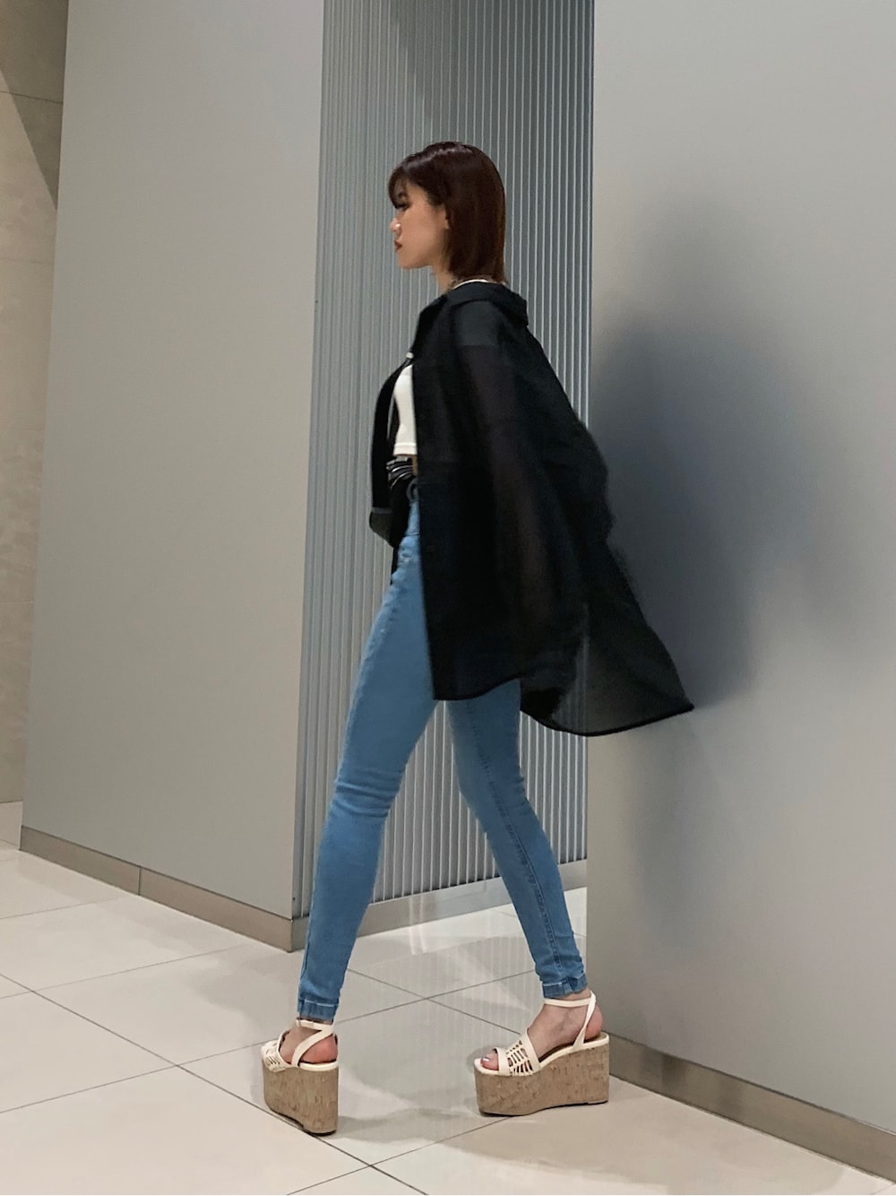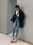 【shirt】EMODAさんで大人気のルーズシャツ❤︎ご覧の通りかなりオーバーサイズで長身でも裏太ももぐらいまですっぽり体型をカバー✌︎透け感が薄っすら見えるボディラインをスッキリ仕上げてくれたり、ブラックカラーでも全く重い印象を与えません!気温が不安定な時期だからこそヘビロテ確定で1枚は持っていたいアイテムです❤︎【tops】綿100%で通気性が良い為、ジメジメする日でも着心地◎1枚でもインナー使いでも幅広く着回しが効くのでイロチ買いもオススメです❤︎【denim】薄色デニムって"膨張してしまう"イメージが強いかと思われがちですが、このデニムは履くと伸縮性の"戻る力"が強い分、脚のラインをしっかり引き締めあげてくれるんです!アイスブルーの色味でコーデ全体を一気に夏色に仕上げてくれますよ☺︎【point】暑い日々が基本続き、雨が降ると気温が下がったり身体が冷えたりしますよね..そんな6月の梅雨シーズンにオススメなコーデです❤︎