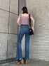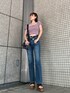 トレンドコーデ❤︎【トップス】トレンドのパフスリーブが二の腕周りをスッキリカバーしてくれるトップス❤︎ネックが2WAYでオフショルとスクエアで着回してお使い頂けます☺︎露出感を控えめにしてカジュアルな気分だったので今回はスクエアネックで着用してみました❤︎パッド付きで下着問題を気にせず着れるのが、面倒くさがりな私からすると凄くタイプでオススメな1着です!【デニム】コーディネートを考える時に最も重視する"美脚効果"を叶えてくれるデニム❤︎なだらかなカーブ状のフレア型は太ももラインを程良くカバーしつつも細見えに仕上げてくれます!履き心地も比較的柔らかくデニムに苦手意識がある方でも挑戦して頂けます✴︎