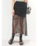 オールブラックコーデ❤︎【トップス】去年に続きEVRISで大人気なデザイントップス❤︎後ろのレースアップがその日の気分で肌見せ加減を開け閉めし調節出来るので使い勝手が便利なんです◎中には分厚目な取り外し可能なパッド付きなので、下着問題も困らないのが女性の味方ですよね☺︎面倒くさがりでストレスフリーを好む私からするとかなり救われています❤︎【スカート】私服ではミニスカートを避けがちな私ですか、こちらのスカートは足首辺りまでロングスカートが覆い被さっており、苦手意識が軽減されました✌︎上品な透け感のオーガンジー素材が風合いを綺麗に仕上げてくれます!シンプルなトップスに合わせるだけでもコーディネートを一気に格上げしてくれるのでオススメです❤︎