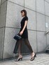 オールブラックコーデ❤︎【トップス】去年に続きEVRISで大人気なデザイントップス❤︎後ろのレースアップがその日の気分で肌見せ加減を開け閉めし調節出来るので使い勝手が便利なんです◎中には分厚目な取り外し可能なパッド付きなので、下着問題も困らないのが女性の味方ですよね☺︎面倒くさがりでストレスフリーを好む私からするとかなり救われています❤︎【スカート】私服ではミニスカートを避けがちな私ですか、こちらのスカートは足首辺りまでロングスカートが覆い被さっており、苦手意識が軽減されました✌︎上品な透け感のオーガンジー素材が風合いを綺麗に仕上げてくれます!シンプルなトップスに合わせるだけでもコーディネートを一気に格上げしてくれるのでオススメです❤︎