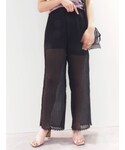 見た目から涼しげな夏コーデ❤︎【トップス】去年も大人気だったクロップドTEEが更にバージョンアップして登場しました✴︎しっかりしたリブ地なので透け感が気にならず、1枚でサラッと快適に着れちゃいます!普段色物を私服であまり取り入れない私ですが、この爽やかなブルーは肌馴染みも良く挑戦し易かったです✌︎【ボトムス】裏地がショート丈になっていてシアー感が涼しげなパンツはフルレングスですが開放的に着用して頂けます!内側に入った裾のスリットがサンダルとの相性も抜群✴︎ウエスト部分は内側に紐が付いていて、全体的にゴムだけど更にグッと縛れるタイプなのがスッキリ見え重視の私からすると良いポイントです!