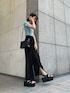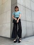 見た目から涼しげな夏コーデ❤︎【トップス】去年も大人気だったクロップドTEEが更にバージョンアップして登場しました✴︎しっかりしたリブ地なので透け感が気にならず、1枚でサラッと快適に着れちゃいます!普段色物を私服であまり取り入れない私ですが、この爽やかなブルーは肌馴染みも良く挑戦し易かったです✌︎【ボトムス】裏地がショート丈になっていてシアー感が涼しげなパンツはフルレングスですが開放的に着用して頂けます!内側に入った裾のスリットがサンダルとの相性も抜群✴︎ウエスト部分は内側に紐が付いていて、全体的にゴムだけど更にグッと縛れるタイプなのがスッキリ見え重視の私からすると良いポイントです!