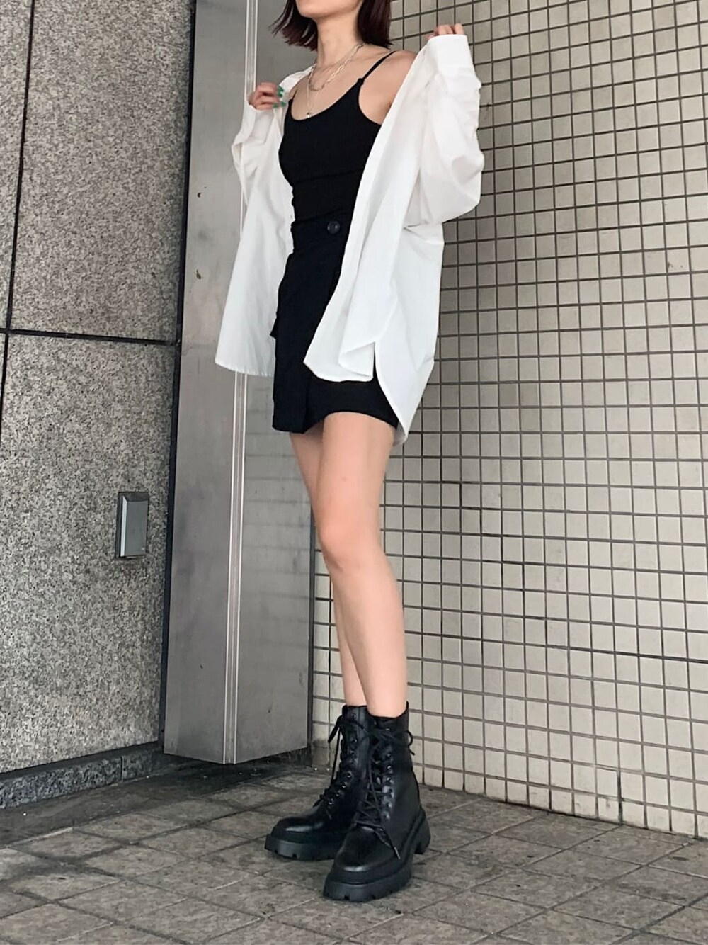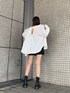 シンプルながらもトレンド感を抑えたモノトーンコーデ❤︎【シャツ】一見シンプルながらもバックスタイルが目を惹く1着❤︎後ろのリボンで肌見せ加減や着丈が調節可能○高身長の私でもヒップラインをすっぽりとカバー出来る着丈が、ミニボトムも抵抗なく履けちゃうので、その点女子からするとポイントがかなり高いですよね❤︎綿100%素材で通気性が良く、真夏の軽めな羽織りにも最適!今の時期、日焼けや冷房対策にもオススメです☺︎【スカート】私服で滅多にミニスカートを履かなくなってしまった私ですが、インナーパンツ付きに安心感を抱き愛用決定❤︎ 着脱が後ろファスナー1つで超簡単✌︎写真の様に骨盤上から始まるウエストがギュッとタイトに絞られており、自然と着痩せ効果を演出出来ます✴︎【ポイント】大好きなモノトーン色で統一しつつも、今年っぽく肌見せで抜け感を出し、足元はワークブーツで少しエッジの効いたスタイリングに仕上げました!