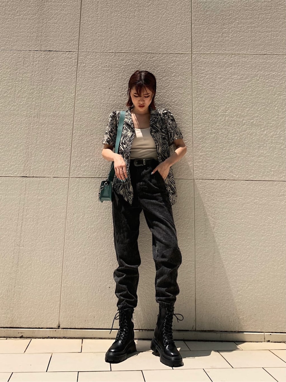 エッジの効いたカッコいいモノトーンコーデ❤︎【シャツ】パッと見でひと目惹きつけるゼブラ柄のシャツはモノトーン配色なので、柄に抵抗がお有りな方でも比較的挑戦し易いです☺︎主役級TOPSは絶対に1枚持っておくと簡単にオシャレに決まって便利ですよ✌︎肩幅が広いのが悩みでパワーショルダーに苦手意識がありましたが、テロッとした素材のシャツでハリ感がないのと、前ボタンを全部開けてインナーと胸元を肌見せすることにより、肩周りを強調され過ぎずに着用出来るので同じお悩み方も、是非参考にしてみて下さいね!【デニム】見た目とは裏腹に薄手なデニム地を使用しており、今のジメっと暑いシーズンにピッタリなデニムです❤︎私自身も挑戦した事のないシルエットのパンツでしたが、ヒップや太もも.ふくらはぎと下半身の全体的なシルエットを覆いスッキリと仕上げてくれるので、一気にジョガーデニムの虜になりました❤︎EVRISの同じ綿100%仕様のデニムと比較し、薄手なデニム生地の為柔らかく履き心地も良かったです◎