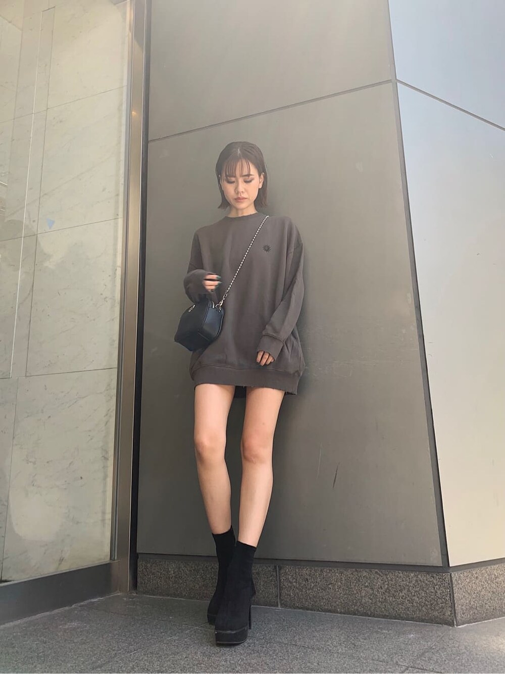 カジュアルだけどちょっぴり女の子感溢れるコーディネート❤︎【トップス】EVRISといえば..のサニーモチーフの刺繍が胸元に入ったスウェットはEVRIS好きの方からするとマストハブアイテムですよね❤︎サイドにはポケット付きで、ポケットの無いフレアレギンスと合わせた時やミニバッグを持つ機会が多いからこそすっごく便利!!166cmでもザックリ1枚でワンピース風に着用出来ちゃいました❤︎【パンツ】オーバートップスを着用した際に、裾のロールアップデザインをチラ見せするのがポイントとなって可愛いショーパン☺︎腰回りにタックが入っていてタイトシルエットな分、ゴワゴワしないのも着痩せ出来てオススメポイントです❤︎