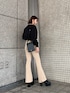 ラフな大人カジュアルコーデ❤︎【トップス】ショート丈のコンパクトサイズで着太り感が一切出ないトレーナーはスタイルアップ重視な私からするとコーデに欠かせないアイテムです!裏起毛で着心地も柔らかく暖かいですよ☺︎カラー別で胸元のロゴの配色も異なるのがポイントです!【パンツ】EVRISで大人気のフレアレギンスに新しく仲間入りしたデザインです❤︎深めに入ったサイドスリットがシューズデザインも映えて、足先までお洒落に仕上げてくれます✴︎太ももと膝がピタッと引き締まり美脚効果満点です◎