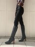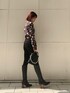 柄だけどどこか大人っぽい雰囲気なコーデ❤︎【トップス】EVRISオリジナル柄がヴィンテージライクでこれ1枚で高級感溢れお洒落に仕上るニット✴︎肩幅が広めな骨格ですが、大胆なスクエアネックで鎖骨ラインをガッツリ肌見せすることで目線が外れて体格も自然とスッキリ見え出来ますよ❤︎骨盤くらいの短めな着丈がEVRISのハイウエストボトムシリーズとも好相性です◎【ブーツ】色んなテイストのコーデにもハマりやすくて今季愛用しまくっているロングブーツ❤︎足首周りがスラッと細身な作りなので美脚度UP!身長が166cmあるのでプライベートではあまりヒールを好んで着用しない方ですが、7.5cmヒールは程よく盛れて尚且つ楽でちょうど良い高さです!ロングブーツをまだお持ちで居ない方は特にオススメです❤︎