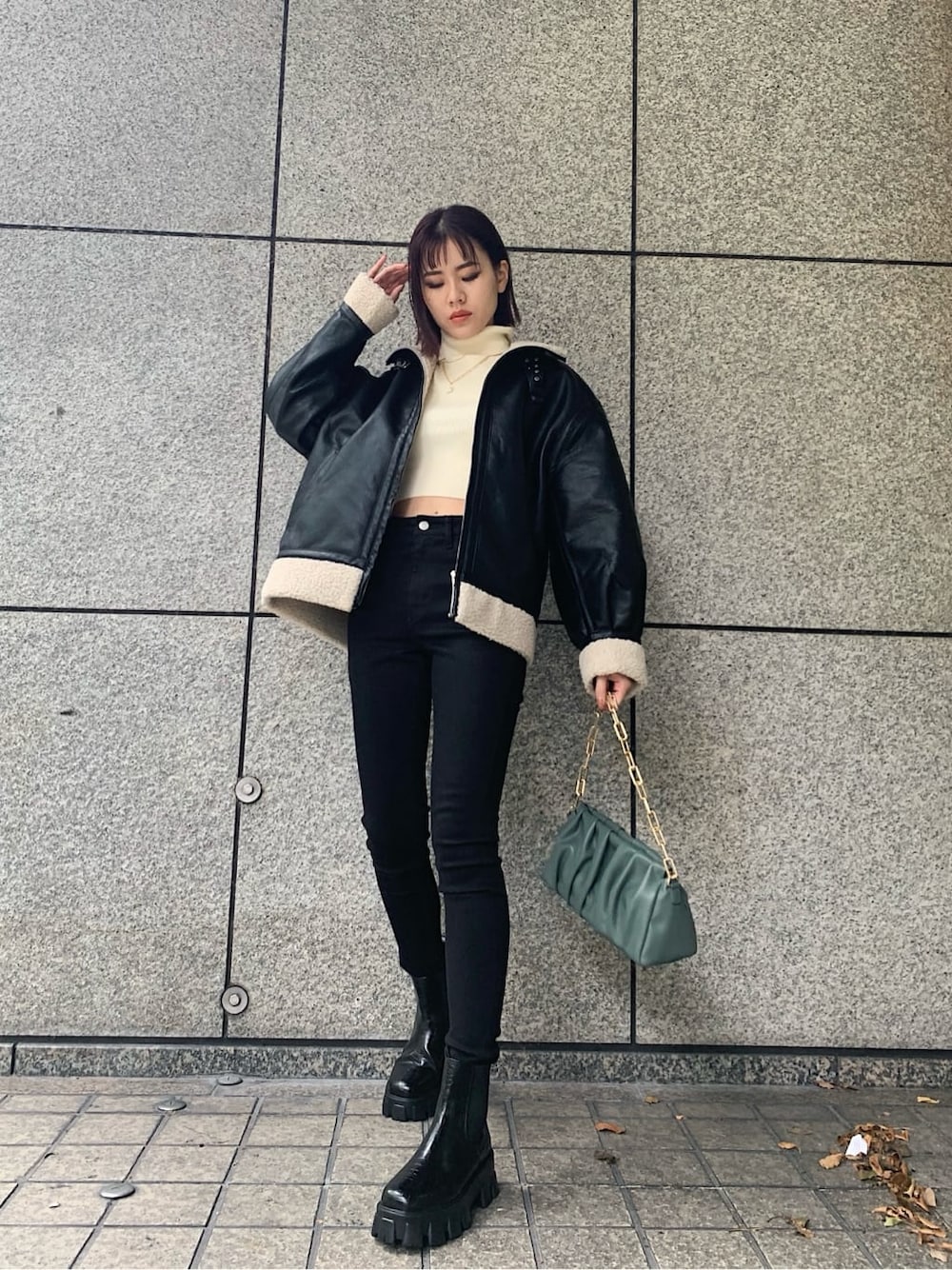 防寒対策バッチリな冬のオールブラックコーデ❤︎【アウター】1度目の入荷で人気殺到し即完したブラックカラーが再入荷!!表面がフェイクレザーで裏面がボアな分、風通しが一切ないので羽織ってる範囲(ヒップラインまでしっかり)防寒性抜群!!お袖と後ろの裾の部分にタックが入っていて窄んでいるので、隙間風の侵入も防いでくれます!1.2月の極寒シーズンにイチオシなアウターです❤︎【ブーツ】私物で毎日愛用しまくっているブーツ!立ち仕事で疲労が溜まった脚にでも履きたい!って思えるブーツって素晴らしいですよね✴︎軽くて高低差もないので長時間の立ち歩きに心底オススメです!!