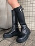 HIKARU(EVRIS)のブーツ「ベルテッドプラットフォームミドルブーツ」を使ったコーディネート