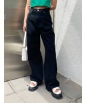 HIKARU(EVRIS)のベルト「メタルバックルフェイクレザーベルト」を使ったコーディネート