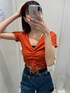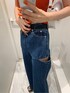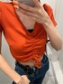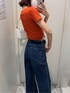チラッと肌見せカジュアルコーデ❤︎【トップス】リブ地で柔らかく着心地抜群❤︎フロントのドロスト部分で着丈調節が可能なので腹チラで今年っぽく着て頂くのがオススメです☺︎パキッとオレンジカラーが肌をトーンUPしてくれます!【デニム】今季トレンドのスラッシュデニム❤︎太もも〜膝に掛けて少し細身なシルエットが美脚効果◎骨盤より数センチ上のハイウエストが脚の長さも盛れます✴︎【シューズ】EVRISらしいバックルデザインがエッジが効いててカッコ良いですよね❤︎アッパー裏はクッション仕様になっており、靴擦れ防止!11cmヒールですが、ウエッジソールの為安定感抜群です!【バッグ】今季トレンドの横長ハンドバッグは持つだけでお洒落度UPアイテム❤︎中にはポケットが2箇所付いてあるので収納も便利!【ベルト】EVRISで大ヒットロングセラーアイテム❤︎スタッフ全員リピート買いしている程多用使い出来ます!