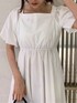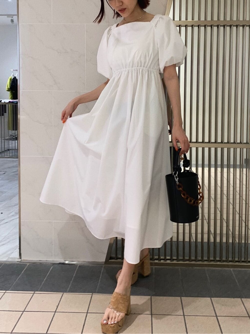 夏のデートコーデ❤︎【ワンピース】コットン素材が含まれていて、少しハリ感出てボリュームが可愛いロングワンピース❤︎オフショルとスクエアネックの2wayで着回せます!後ろのレースアップデザインで肌見せが女性らしさ満点◎中はパッド付きなので、インナーの心配も無用です✌︎ 【バッグ】大人っぽいデザインが特徴的❤︎口も大きく開き、マチもしっかりある為かなり大容量です◎ 【ネックレス】華奢なデザインですが、輝き方が強めなので首周りが華やかに..❤︎オフショルコーデとも相性◎【シューズ】全面コルクデザインが夏らしい1足❤︎10.5cmヒールで脚長効果抜群です!24cmでLサイズを着用してます☺︎