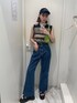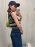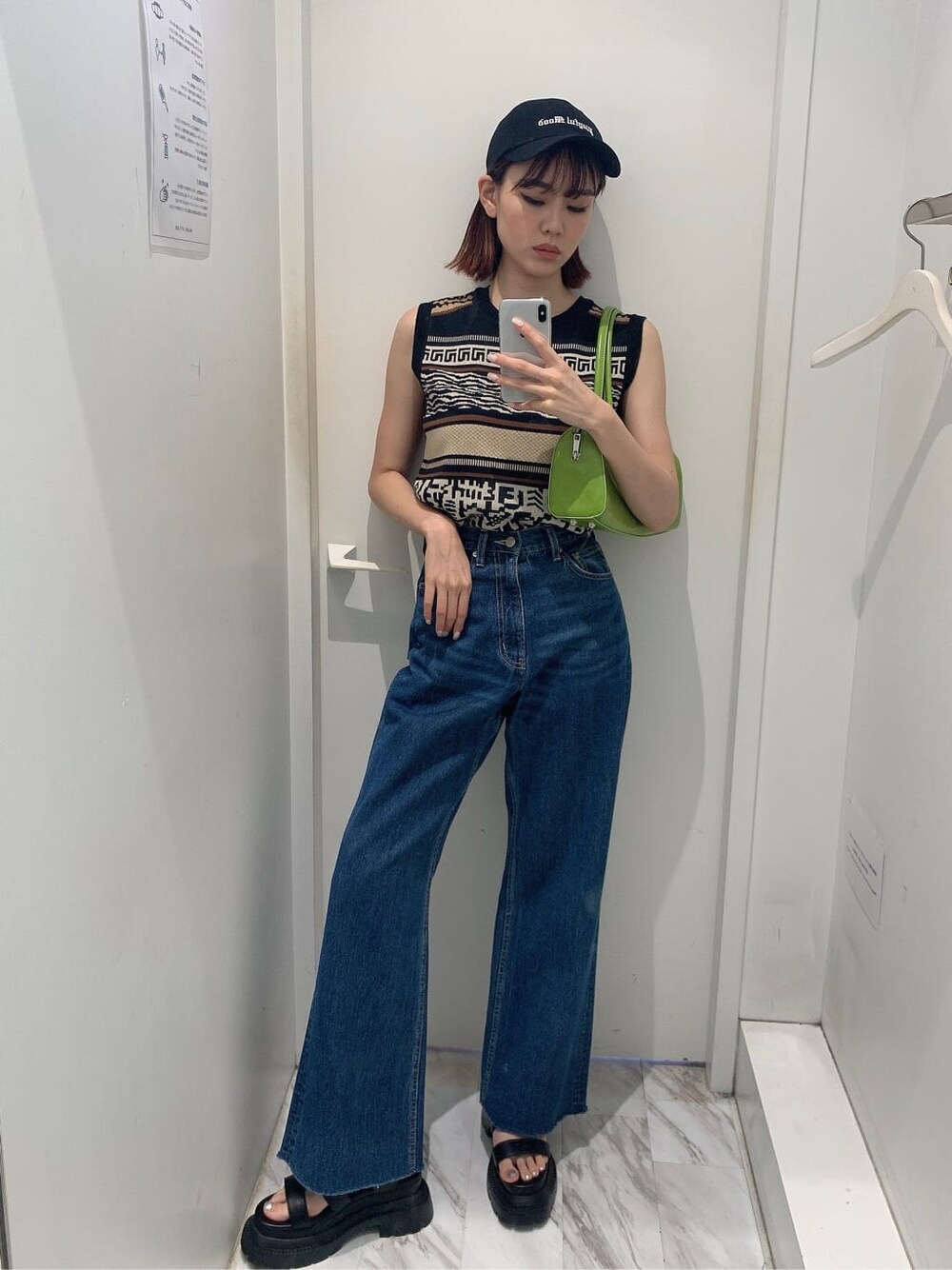 EVRISっぽ個性派カジュアルコーデ❤︎【トップス】EVRISらしい個性的な柄・配色が1枚で可愛いトップス❤︎ベースがブラックなので比較的合わせやすいです☺︎着丈は骨盤被さるくらいなので、ハイウエストのボトムにインしやすいです!【デニム】綿100%デニムなので履き始めは硬めですが3.4日履くと馴染み、自分好みに仕上がります✴︎ウエスト周囲はギュッとタイトめでメリハリがでるスタイルに..❤︎166cmでSサイズですとかかとが見える程の着丈です!【キャップ】シーズンコンセプトのロゴ入り❤︎サイズ調節可能です◎ 【シューズ】EVRISらしいバックル付きの厚底サンダル❤︎7cmヒールですがほぼ高低差もなく楽チンです!24cmでLサイズ着用してます☺︎ 【バッグ】500mlのペットボトルもスッポリ収納可能◎見た目とは裏腹の大容量です❤︎