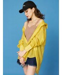 イエローシャツをアクセントにしたお洒落コーデ❤︎【シャツ】去年のリバイバルアイテム♡透け感がかなり強めなシアーなので長袖でも真夏へっちゃらです!166cmで裏太ももまでカバー出来るオーバーサイズです!【トップス】パッド付きなので1枚で着用可能です◎スクエアネックとサイドの肌見せがヘルシーな印象に✴︎ハイウエストボトムと合わせてお腹が少し見えるくらいの丈感です!【パンツ】EVRISでロングセラーアイテムのリブフレアパンツと同素材を使用したハーフタイプ❤︎締め付け感なく着心地がストレスフリーです✌︎ 【ソックス】2色セット販売です❤︎ブーツからチラッと出るサニーモチーフがポイント!【ブーツ】見た目とは裏腹な軽量ブーツ✴︎フィットする足首のシルエットがミニボトムやワンピースと好相性に合わせれます❤︎ 【バッグ】今季トレンドの横長ハンドバッグは持つだけでお洒落度UPアイテム❤︎中にはポケットが2箇所付いてあるので収納も便利!