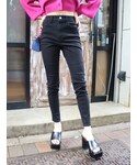 オールブラックコーデ❤︎【トップス】しっかりしたスウェット生地のタンクトップです!ウエスト部分がゴム仕様になっており、ウエストの細見え効果◎【デニム】ポリウレタンも含まれており伸縮性がかなり豊かで履き心地抜群!骨盤上のハイウエストで脚長効果◎オールシーズン長く着回せれるので1本はマストハブアイテムです❤︎ 【ブーツ】見た目とは裏腹な軽量ブーツ✴︎フィットする足首のシルエットがミニボトムやワンピースと好相性に合わせれます❤︎ 【ベルト】EVRISで大ヒットロングセラーアイテム❤︎スタッフ全員リピート買いしている程多用使い出来ます!【アクセサリー】EVRISでロングセラーアイテムのネックレス❤︎3連が1つに繋がっている為、時間短縮で着用でき華やかに仕上がります!