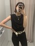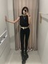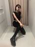 オールブラックコーデ❤︎【トップス】しっかりしたスウェット生地のタンクトップです!ウエスト部分がゴム仕様になっており、ウエストの細見え効果◎【デニム】ポリウレタンも含まれており伸縮性がかなり豊かで履き心地抜群!骨盤上のハイウエストで脚長効果◎オールシーズン長く着回せれるので1本はマストハブアイテムです❤︎ 【ブーツ】見た目とは裏腹な軽量ブーツ✴︎フィットする足首のシルエットがミニボトムやワンピースと好相性に合わせれます❤︎ 【ベルト】EVRISで大ヒットロングセラーアイテム❤︎スタッフ全員リピート買いしている程多用使い出来ます!【アクセサリー】EVRISでロングセラーアイテムのネックレス❤︎3連が1つに繋がっている為、時間短縮で着用でき華やかに仕上がります!