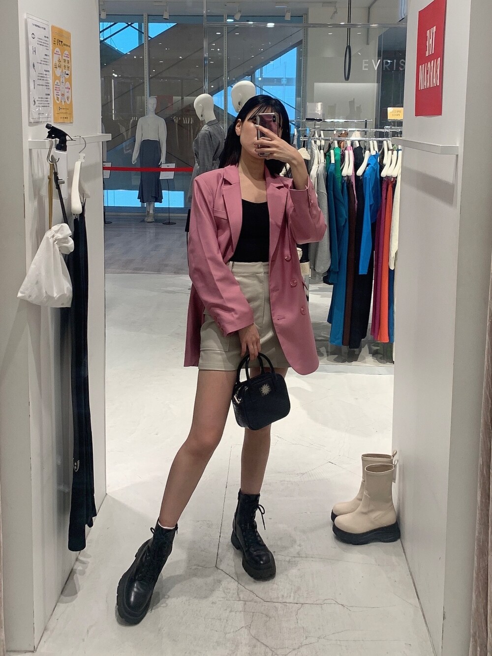 春先取りコーデ❤︎【ジャケット】ピンクカラーが一気に春コーデへと染まるジャケット❤︎オーバーサイズですがテロッとした質感なので華奢見え出来ます✴︎【スカート】毎年大人気のポケット付スカートシリーズが今年も登場❤︎ウエストがタイトで着痩せ効果◎166cmの丈感です。【バッグ】ハンドとショルダーの2wayでお使い頂けます❤︎コロンとしたシルエットがコーデのアクセントになります✌︎ 【ブーツ】見た目とは裏腹な軽量ブーツ✴︎フィットする足首のシルエットがミニボトムやワンピースとも好相性に合わせれます❤︎リピート買いしたいくらいスタッフからの支持率も高い大人気のブーツです!