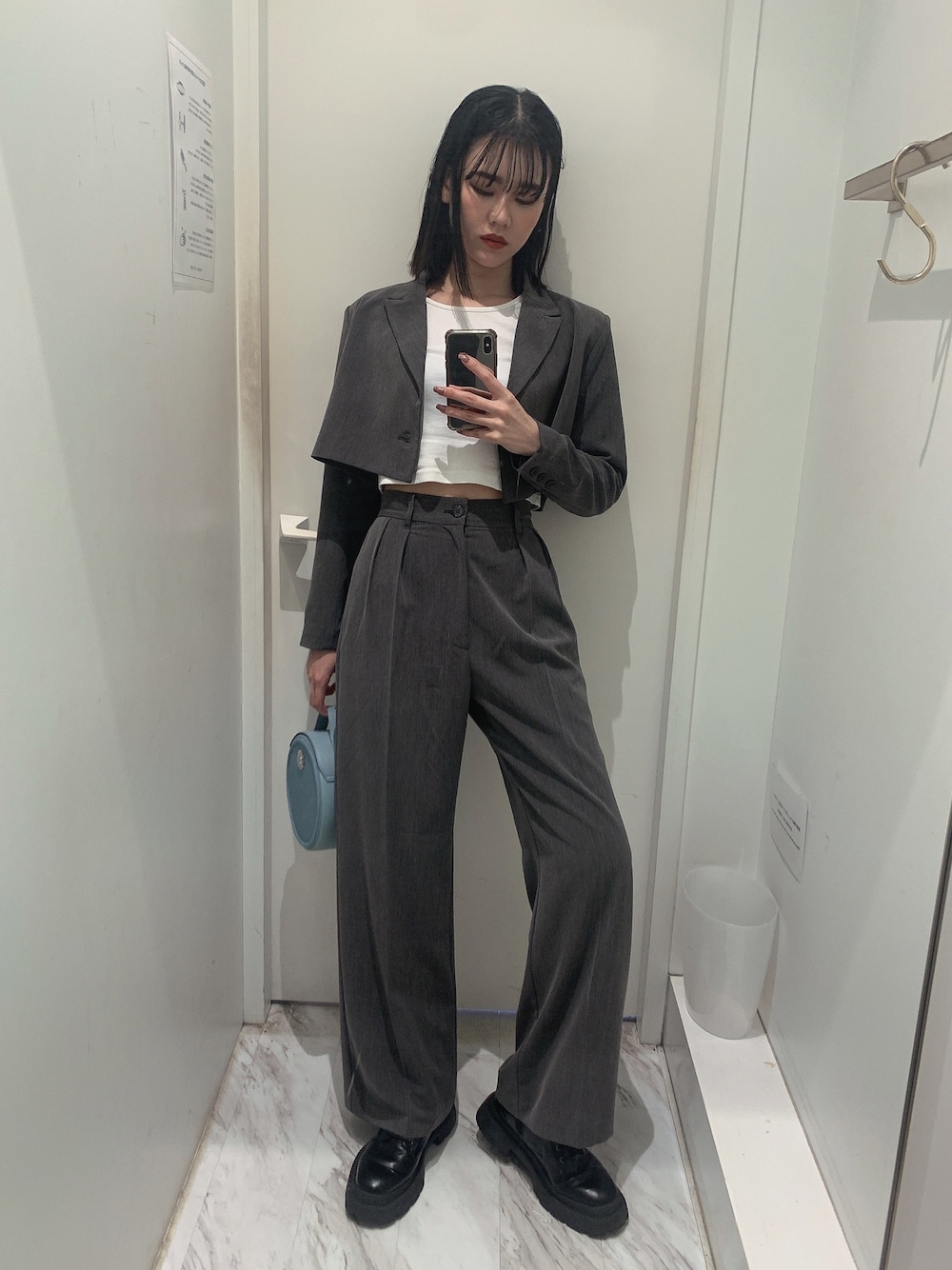 トレンド×スタイリッシュコーデ❤︎【ジャケット】みぞおちが被さるくらいの着丈です!薄手な肩パッド入りでその分お腹周りを自然と細見え出来ます❤︎【トップス】インナーとしても大活躍で2色買い推奨アイテムです☺︎【パンツ】ウエストにタックが入っており細見え効果◎ずるっと履くのが今年のトレンドです!【ブーツ】見た目とは裏腹な軽量ブーツ✴︎フィットする足首のシルエットがミニボトムやワンピースとも好相性に合わせれます❤︎リピート買いしたいくらいスタッフからの支持率も高い大人気のブーツです!【バッグ】ハンドとショルダーの2wayでお使い頂けます✌︎
