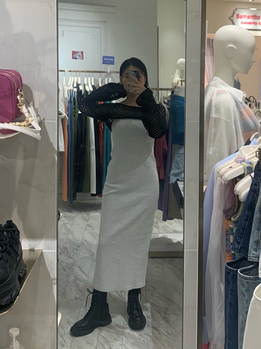 店頭コーデ❤︎【ニット】胸上くらいのショート丈ニット!トップスやワンピース、シャツ等と幅広いアイテムとレイヤード可能です◎【ワンピース】パッド付きで1枚で着用可能です✌︎伸縮性抜群で着やすいです!【ブーツ】ヘビロテブーツ❤︎軽量で足に負担なく履けます!