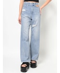 テロッとシャツで抜け感カジュアルコーデ❤︎【シャツ】オフショル・ベアトップ・シャツとして3パターンでマルチに着まわせるデザイントップス⭐︎夏まで使えるサラッとした着心地です!【デニム】ウエスト部分が一部肌見せ、後ろは大胆にクラッシュが入ったインパクトある一本✴︎この夏大活躍間違いなしです!【バッグ】お財布バッグなのでそのままお金を収納しやすくなっています☺︎ショルダーのチェーンがコーデのポイントに❤︎【シューズ】ぼってりしたシルエットの厚底が安定感抜群です!24cmでLサイズ着用しています!【キャップ】EVRISオリジナルロゴデザインのキャップです✌︎