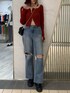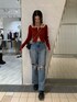 赤ニットが主役なコーデ❤︎ 【トップス】リアルZIPデザインで肌見せ加減がお好みで調節していただけます✴︎タイトシルエットなのでアウターのインナー使いにも最適です! 【デニム】ヴィンテージ感漂う加工がこれ1本でお洒落に仕上がります❤︎ハイウエストで脚長効果◎ 【シューズ】軽量で足に負担なく履けます!24cmでLサイズ着用です☺︎ 【バッグ】マチのあるポケット付で収納力◎