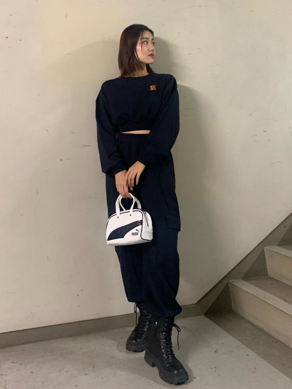 スウェットセットアップスタイル❤︎ 【トップス】ウエストの部分がゴムになっておりお腹周りをスッキリ仕上げてくれます✴︎ 【パンツ】履き心地抜群でラフに愛用できます❤︎コーデに取り入れるだけで一気に海外風スタイルへ... 【バッグ】プーマのセレクトアイテムです❤︎コロンとしたフォルムがハンドでも持ちやすいです! 【シューズ】軽量で足に負担なく履けます!24cmでLサイズ着用です☺︎