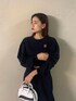 HIKARU(EVRIS)のスウェット「ワンポイントロゴショートスウェット【セットアップ着用可能】」を使ったコーディネート