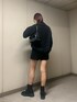 オールブラックコーデ❤︎ 【ニット】オーバーサイズでお尻まですっぽりカバー出来る着丈です!セットアップ着用可能◎ 【パンツ】ウエストが平ゴムでかなり楽チンな着心地です☺︎太もも周りは比較的ピタッとし過ぎていない為細見え効果も◎ 【バッグ】幅広いマチで大容量です◎ 【シューズ】軽量で足に負担なく履けます!24cmでLサイズ着用です☺︎