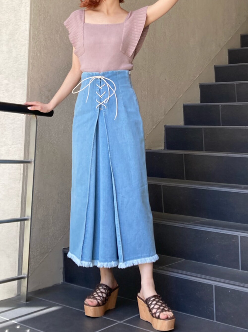 森岡沙耶加(MERCURYDUO)のスカート「デニムレースアップタイトスカート」を使ったコーディネート
