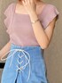 ラッフルニット×デニムスカートのフェミニンカジュアルコーデ♡キメすぎないフェミニン好きさんにおすすめです!!ラッフルニットは前後2wayで、Vネックとスクエアとお好みで着用可能です◎胸元の開きが気になったり、露出は控えめがお好みの方はスクエアを前にするのがいいです☺︎お袖のラッフルは意外と長めなので、普段腕を出すのが苦手という方でもフレンチスリーブのような感覚で着やすくなっております。二の腕の着痩せ効果も☆着用感も大きすぎないので小柄な方でもシルエットを綺麗に着て頂けます!デートや女子会におすすめで、上半身だけでもカワイイからカフェ等での写真映えにも♪スカートはフロントデザインのリボンがかわいくて、カジュアルすぎないのもポイント!ニット、Tシャツ、ブラウスなんでも着回せます!サンダルはマーキュリー歴代神サンダルトップ3に入るぐらいとにかく楽!!!長時間立ちっぱなしでも余裕です^_^傾斜がないのでぺたんこ感覚で履いて頂けます!