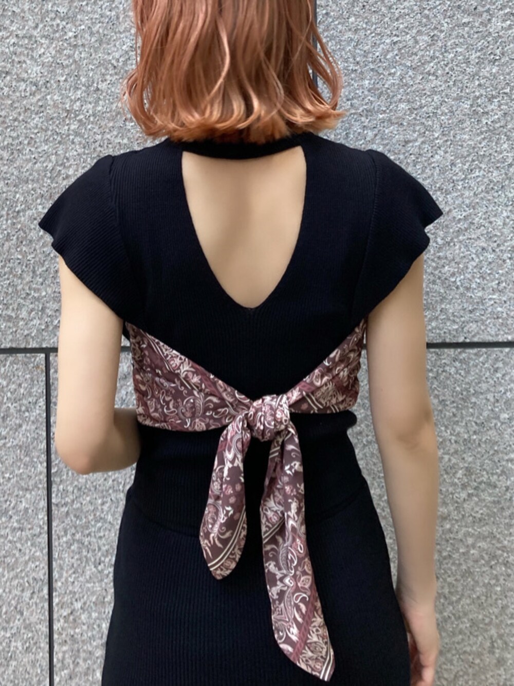 森岡沙耶加(MERCURYDUO)のワンピース「バックシャンスカーフ付リブニットセットアップ」を使ったコーディネート