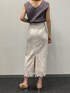 ネックレス付ニットとケミカルレースタイトスカートの定番のMERCURYDUO王道のキレイめコーデ❤︎カジュアルよりも女性らしいコーデがお好みの方に気に入って頂けるアイテムです!ニットはフレンチスリーブになっており、少し肩に被る丈感となっている為、二の腕を気にされている方も毎年驚かれるぐらいスッキリ着て頂けます!Vネックの深さも深すぎないのでお出掛け以外にもオフィスコーデとして取り入れられる方も◎生地感はサラッとしているので夏場でもお使い頂けます!お洗濯をされる時は、ネックレスが取り外せるので取ってから手洗いされて下さい。ケミカルレースのスカートはMERCURYDUOの定番アイテムですが、例年よりも少しフェミニン寄りのレースとなっております。後ろに深いスリットが入っているのでタイトスカートなのに歩きやすく、ストレスフリーで着て頂けます。ハイウエストなのでスタイルアップ効果はもちろんですが、何よりもお尻のラインがキレイで、小尻効果もあります◎アイボリーは少し透け感がありますが、インナーをベージュ等落ち着いた色にして頂くと問題なく着用頂けます!
