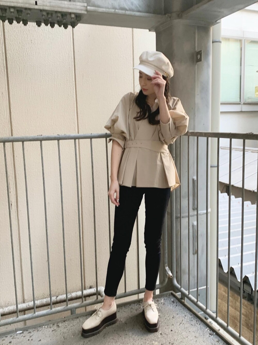 飯村 美沙(MURUA)のシャツ/ブラウス「バックオープンボリュームスリーブシャツ」を使ったコーディネート