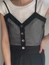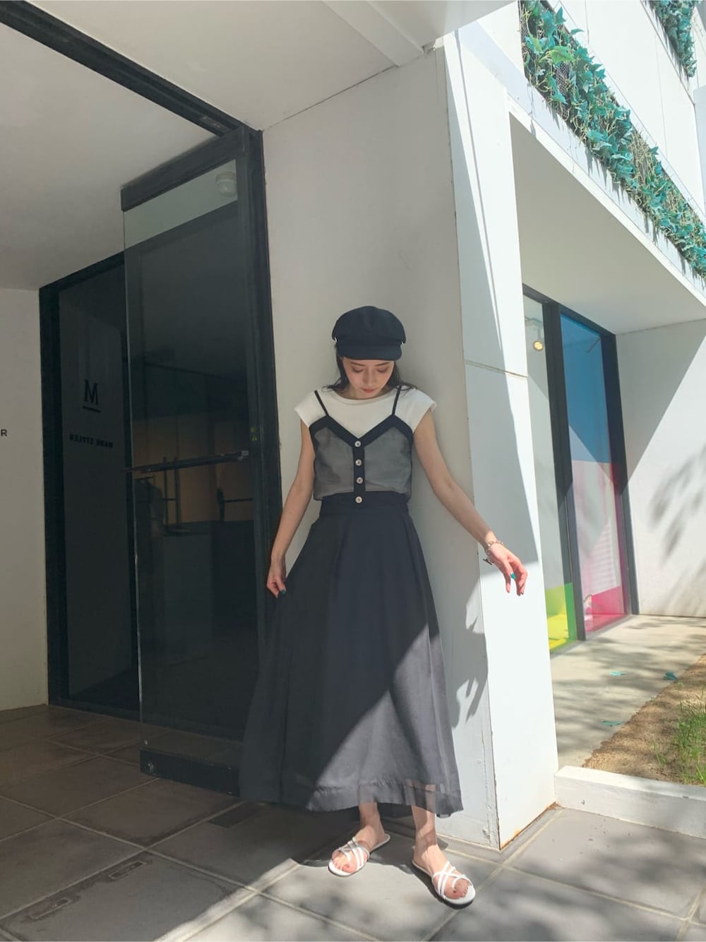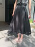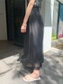 オススメのモノトーンコーデ! 今年トレンドでもある、シアーを使ったスカート!全体的には、透け感がないのですが裾にシアーがあるので、黒でも重く見えない印象に。 合わせてるトップスは、同じくシアーを使ったアイテム!キャミソールは、取り外し可能なのでお持ちのTシャツに重ね着していただいても何でも合います! 私は、普段スカートをあまり着ないのですがモノトーン合わせなら綺麗めすぎないので挑戦しやすいかと!ヒールのないサンダルで合わせていますが、少しモード感を出したい方はシューズ合わせなどもオススメです!