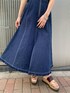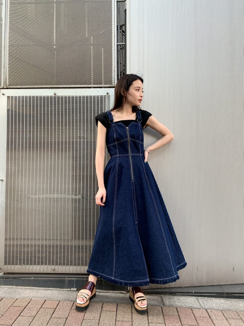トレンドのデニムワンピース! かなりウエストの位置が高めなので、着痩せして見えます! また、センタースリットなので歩きやすく後ろのゴムのところも伸びがあるので着やすさ抜群です! Tシャツなどと合わせてカジュアルにも着ていただけます!ロングワンピースなので、脚も出すのに抵抗ある方でもチャレンジしやすいです!小柄な方は、アジャスターなどで調節していただくか厚底サンダルなどと合わせるとスタイルよく見えやすいです!